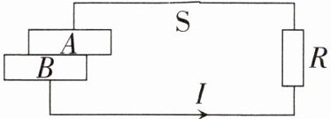 电源 负 解析 将A、B板接入如图所示的电路后闭合开关,电路中有电流通过,说明A、B板整体对外提供电能,相当于电路中的电源;根据电路中的电流方向可知,A板相当于电源的负极。