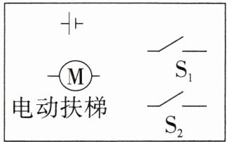 12. 节约电能,不仅可以保护环境,还能建设节约型社会。地下通道的电动扶梯只有在白天且有人时才开启。如图所示,利用红外线自动开关$S_1($现场有人时闭合,现场无人时断开)以及可见光自动开关$S_2($白天闭合,夜间断开)控制电路即可达到上述目的,请完成电路图的连接。