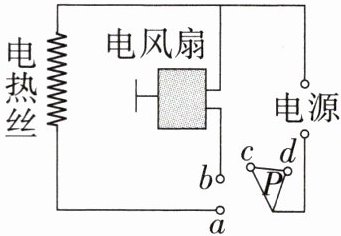 9. 小明设计了一个电吹风,其电路图如图所示,a、b、c、d为四个固定触点,转动扇形金属触片P的位置可同时接触两个触点,使电吹风处于关机、吹热风和吹冷风三种工作状态( )