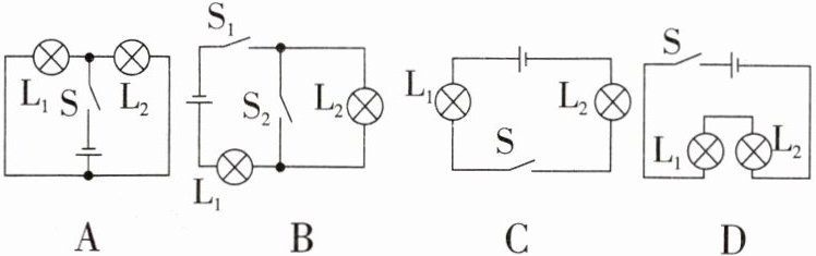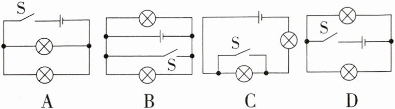 A 解析A中,闭合开关后,电流有两条路径,两灯泡并联。