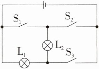 D.闭合$S_2、$$S_3,$断开$S_1,$灯$L_2$被短路