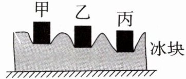 7. 将质量相同的甲、乙、丙三块金属加热到相同的温度后,放到上表面平整的冰块上。经过一段时间后,冰块的形状不再变化时的情形如图所示。若不计热量损失,则三块金属的比热容$c_{甲}$、$c_{乙}$、$c_{丙}$最大的是( )