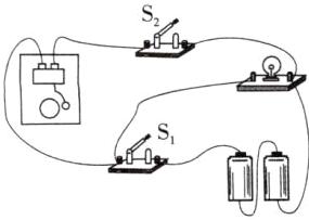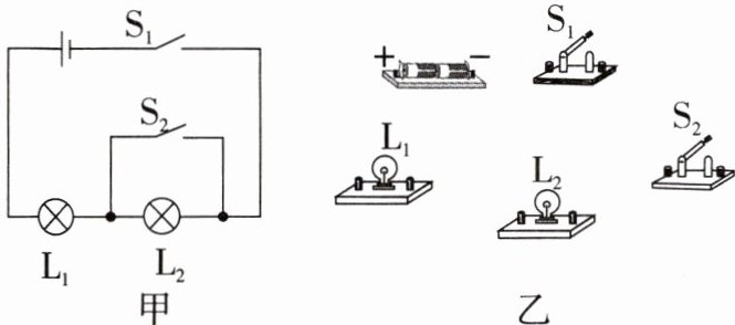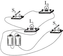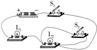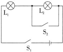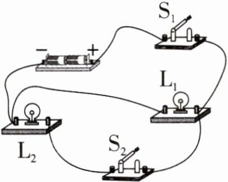 (3)开关$S_1、$$S_2$都闭合时,灯$L_1$亮,灯$L_2$不亮。
