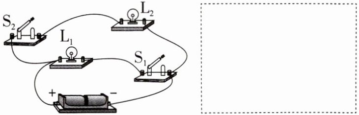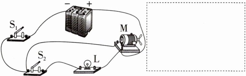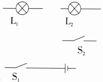 要求:(1)只闭合开关$S_1$时,灯$L_1、$$L_2$都亮;