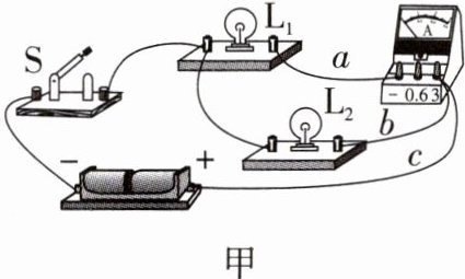 (1)由图甲可知,两个小灯泡并联,电流表与灯L₁串联,由此可知,电流表测量的是通过灯L₁的电流。