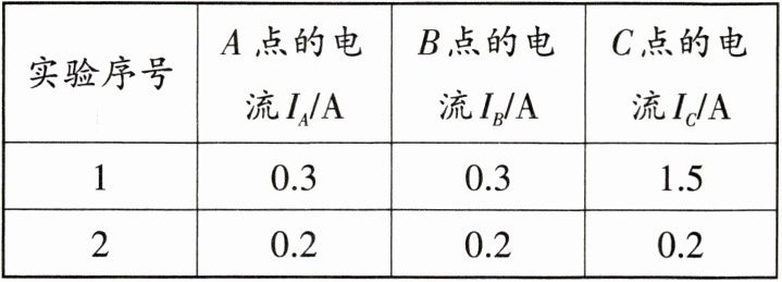 |实验序号|A点的电流Iₐ/A|B点的电流Iᵦ/A|C点的电流Ic/A|