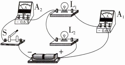 4. 如图所示的实物电路,闭合开关S后,电流表$A_2$的示数为0.6 A,电流表$A_1$的示数为0.2 A。则通过小灯泡$L_1、$$L_2$的电流分别是 ( )