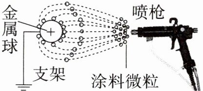 解析 涂料微粒带负电荷,当涂料喷出后,由于同种电荷互相排斥,涂料微粒会形成分散的雾状。
