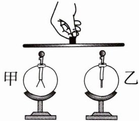 7.如图所示,取两个相同的验电器甲和乙,其中甲带正电,乙不带电,用带有绝缘手柄的金属棒把甲和乙的金属球连接起来。下列说法正确的是 ( )
