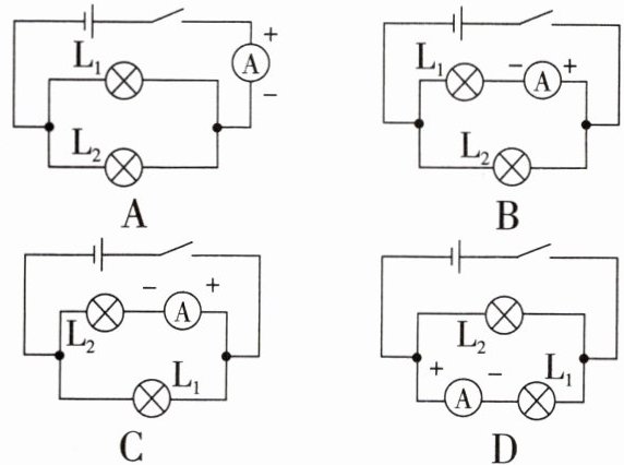 C 解析 分析实物电路可知,两灯并联,电流表和灯L₂串联。故选C。
