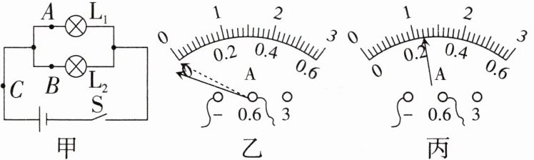 (3)他在测量B处的电流时,闭合开关发现电流表的指针偏转如图乙所示,原因是______。在排除故障后,电流表的示数如图丙所示,则电流表的示数为______A。