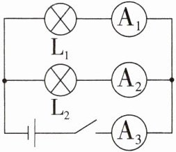 C 解析 由图可知,L₁和L₂并联,电流表A₁测通过L₁的电流,电流表A₂测通过L₂的电流,电流表A₃测干路中的电流。当L₁突然烧坏时,L₁断路,则电流表A₁没有示数,电流表A₂不受影响,示数不变。此时灯L₂、电流表A₂与电流表A₃串联接入电路,根据串联电路中电流的规律知,电流表A₂、A₃的示数相等。故选C。