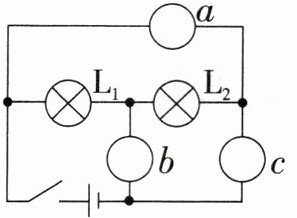 (3)若a为电压表,b为电流表,c为电流表,则灯L₂被短路,故灯L₂不亮。