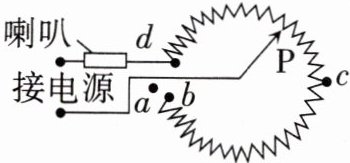 6.D 解析:若使音响的音量最大,则电路中的电流应最大,电路中的电阻应最小,电阻丝连入电路中的长度应最短,所以应将滑片P置于图中的d点。故选D。