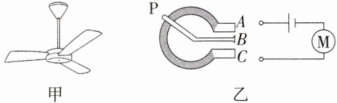 9. 如图甲为教室内的可调速吊扇,图乙是其模拟电路。通过转动控制面板上电位器的旋钮,可以调节吊扇的转速。下列分析正确的是( )