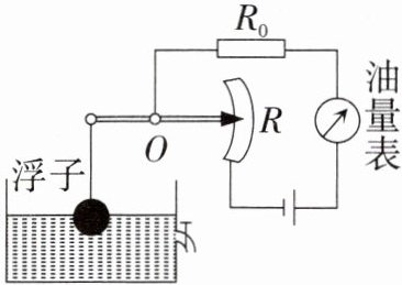 10. 【科学思维】如图是一种测定油箱内油量的装置。其中R是滑动变阻器的电阻片,滑动变阻器的滑片跟滑杆连接,滑杆可以绕固定轴转动,另一端固定着一个浮子。从电路连接方式可分析出,此油量表实际上是一个______(选填“电流表”或“电压表”)。当油箱中的油量减少时,油面下降,浮子随油面下落,带动滑杆使滑动变阻器接入电路的电阻变______,从而使油量表的示数______(选填“变大”“不变”或“变小”)。