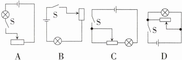 8.D 解析:D中,滑动变阻器和小灯泡并联接在电源上,小灯泡和滑动变阻器互不影响,小灯泡的亮度不会变化。故选D。