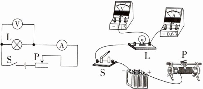 7. 如图所示,根据电路图,用笔画线代替导线将实物图连接完整。(要求:电流表选用小测量范围)