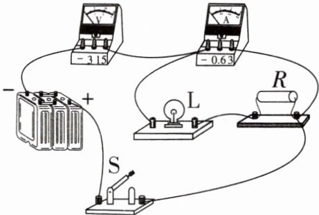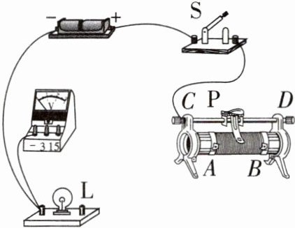 9. 如图所示,请按要求用笔画线代替导线将实物图补充完整。要求:滑动变阻器的滑片P向右移动时,小灯泡变亮,电压表测量小灯泡L两端的电压。