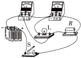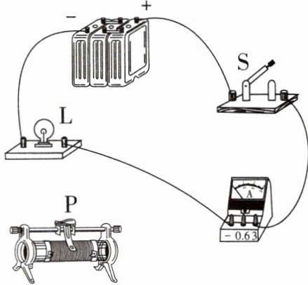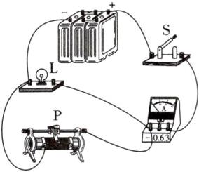 10. 如图所示的电路中,有两根导线尚未连接,请用笔画线代替导线将其补上。要求:闭合开关S后,滑动变阻器的滑片P向右移动时,小灯泡L的亮度不变,电流表的示数变小。