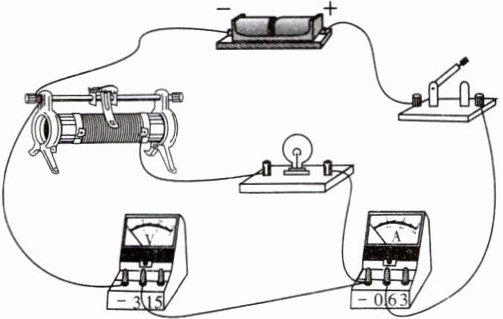 小灯泡短路 滑动变阻器接了下面两个接线柱 解析 小灯泡和滑动变阻器串联,电流表有示数,电路中有电流,一定为短路,电压表的示数为零,则故障可能是小灯泡短路;排除故障后,移动滑片,电流表和电压表的示数不变,灯发光很暗,即电路中的总电阻较大,滑动变阻器接入电路中的阻值较大,接了下面两个接线柱。
