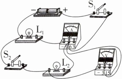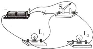 9. 某小组设计了如图所示的电路,闭合开关$S_1、$$S_2$后,两灯均正常发光。过了一会儿,电路发生了故障,请回答下列问题: