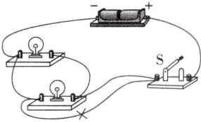 10. 在如图所示的电路中,更改一条导线(在需要更改的导线上打“×”后,再用笔画线代替导线连接),使开关S闭合后,两灯并联。(连线不能交叉)