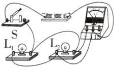 6.如图所示的电路,“○”处可以连接电流表或电压表,测量电路中的电流或电压。闭合开关$S,L_1、$$L_2$两灯均发光,则a是______表,b是______表;若闭合开关S后,只有一个灯发光,则a是______表。