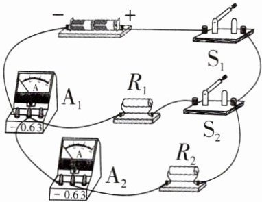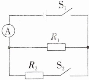 8.如图所示的电路中,闭合开关$S_1、$$S_2$后,电流表$A_1$的示数为0.5A,电流表$A_2$的示数为0.3A,电阻器$R_2$的电阻为10Ω。下列说法正确的是 ( )