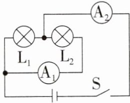 5.如图所示的电路中,当开关S闭合后,电流表$A_1、$$A_2$的示数之比是3:7,则灯$L_1$和$L_2$的电阻之比为______(忽略灯丝电阻随温度的变化)。