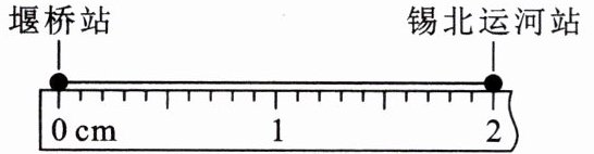 6. 小明想测量无锡地铁的运行速度。他测得地铁从堰桥站出发到达锡北运河站的时间为2min,在手机中的“百度地图”上截取了一张地图(如图所示),用刻度尺测得地图上两站间的距离为