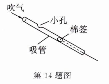 14. (徐州市中考)如图所示是用吸管和棉签制作的“鸟鸣器”,从管口吹气,能发出类似鸟叫的声音,鸟鸣器发声是由空气
