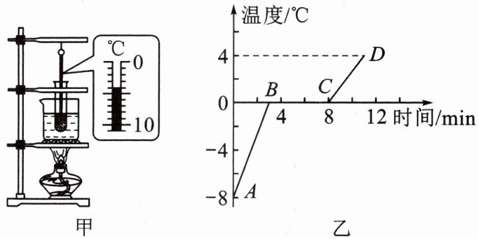 (1)根据实验数据,小明作出了冰熔化时温度随时间变化的图像,如图乙所示,冰属于