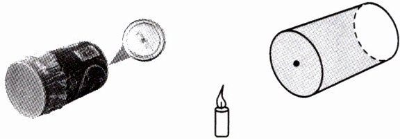 12. 如图所示,在一个空罐的底部中央打一个小孔,再用一片塑料膜蒙在空罐的口上。将小孔对着烛焰,我们可以看到烛焰在薄膜上呈现的像。下列有关这个实验的说法中不正确的是 (