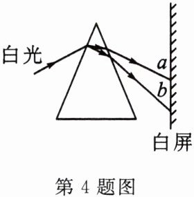 4. 如图,一束太阳光斜射到三棱镜上,经三棱镜折射后,在白屏上形成一条彩色的光带,这是光的