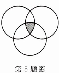 、蓝三种颜色。若将这三种色光按一定比例混合(图中阴影部分),则可以形成白