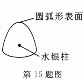 15. 常用体温计的刻度部分为三棱柱,横截面如图,其正面呈圆弧形,这样就可看清体温计内极细的水银柱,以便于读数,这是因为圆弧形玻璃的作用相当于