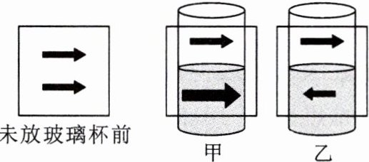 17. 【模型建构】把带双箭头的图片放在圆柱形透明玻璃杯后适当位置,并在玻璃杯中加入适量的水,看到的情景如图所示,图甲与______的成像原理相同,图乙与______的成像原理相同。(均选填“照相机”“投影仪”或“放大镜”)