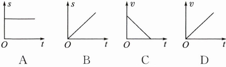 6. 我们把物体沿着直线且速度不变的运动,叫匀速直线运动。用s、v和t分别表示物体的路程、速度和时间,下面四个图像反映物体在做匀速直线运动的是(