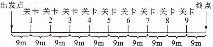 17. 【科学思维】如图所示,某“小车闯关游戏”的笔直通道上每隔9m设有一个关卡,各关卡同步放行和关闭,放行和关闭的时间分别为5s和2s,出发点到终点之间共有9个关卡。关卡刚放行时,一辆小车立即从出发点以2m/s的速度匀速前进,则小车经过