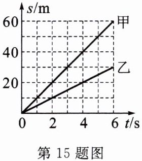 15. 如图所示是公交车甲和公交车乙从同一车站同时、同向匀速行驶的路程随时间变化的图像,甲车的速度为
