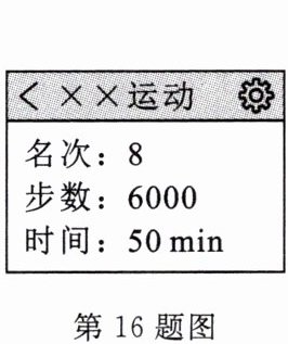 16. 小明某天早上把手机放在口袋中出去散步,如图是散步后手机某App记录的数据。如果小明此次步行的平均步长是0.5m,那么他本次步行的平均速度是