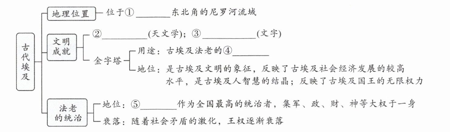 ①非洲 ②太阳历 ③象形文字 ④陵墓 ⑤法老