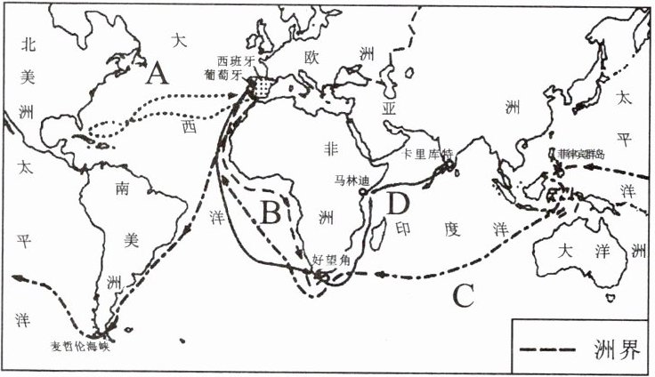 13.新航路开辟时,哥伦布和达.伽马的地理发现使新发现地区的主权归属问题浮出水面。为了缓和西、葡两国日益尖锐的矛盾,教皇亚历山大六世出面确定了一条西、葡势力范围的分界线。葡萄牙国王表示不满,经过重划,巴西被划入葡萄牙的势力范围。这反映了新航路开辟 (