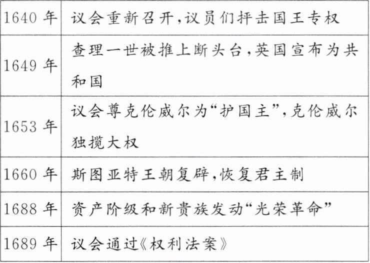 材料二 英国资产阶级革命大事记(部分)