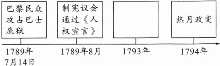 5. 【核心素养·时空观念】时空观念是历史学科的五大核心素养之一。李明同学学习时制作了下面年代尺,请你帮他完成空白处的内容(