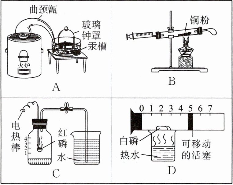 。(4) 利用装置D进行实验,白磷在热水加热的条件下会着火燃烧,实验开始时,活塞向