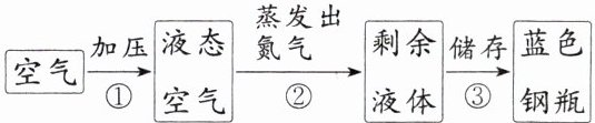 (选填“物理”或“化学”)变化。(2) 从步骤②可以得出氮气的沸点比氧气的沸点