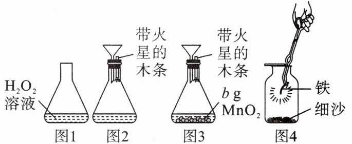 。再通过漏斗加入 b g 二氧化锰,如图 3 所示,此时观察到的现象是带火星的木条复燃