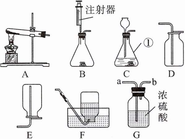 。③若把G装置中的浓硫酸换成水并盛满,用来收集难溶于水的气体时,气体从